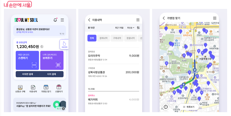 - 서울Pay+ 앱 → 가맹점 찾기 메뉴에서 검색 가능